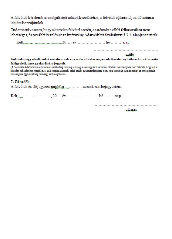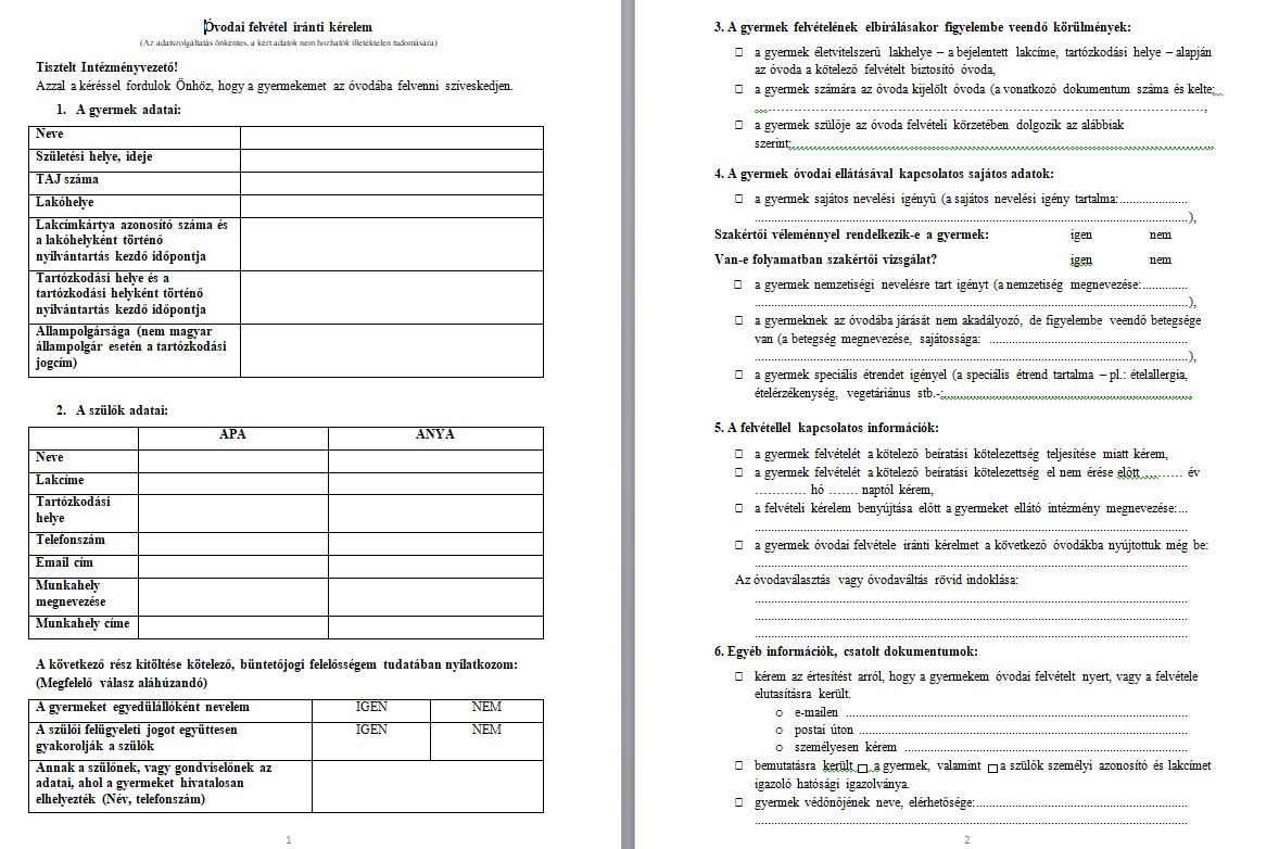 1. Óvodai felvétel iránti kérelem,