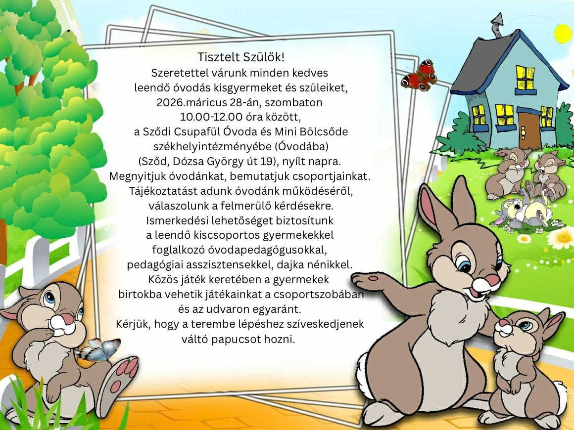 Szeretettel várunk minden óvodás gyermeket, testvért, anyukát, apukát, nagymamát, nagypapát!
