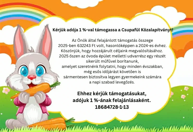 Nyuszi csoportba azokat a szülőket várjuk, akiknek már az előző nevelési évben óvodás volt gyermeke.