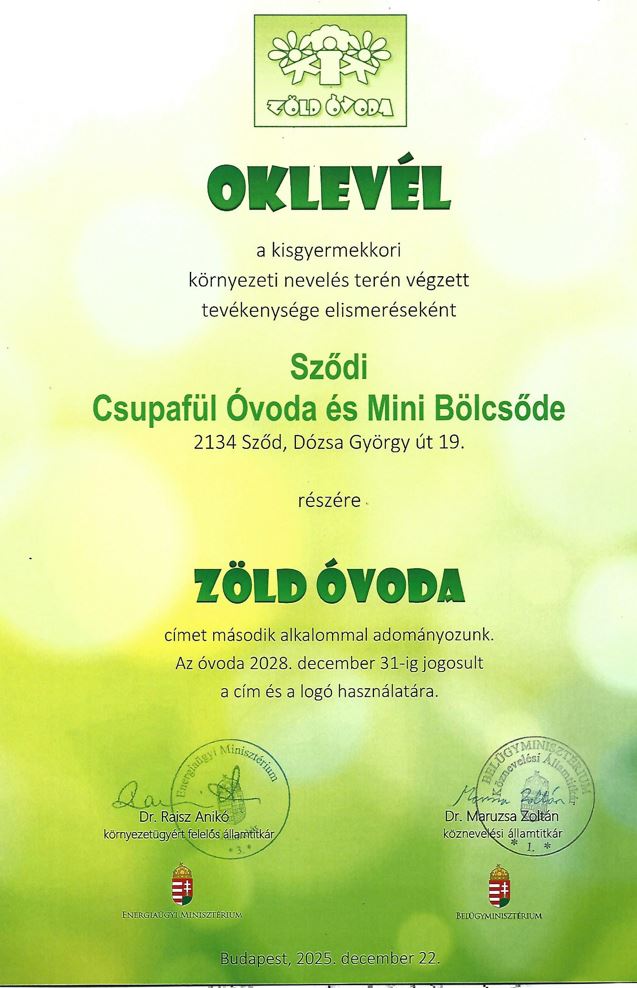 Tájékoztatjuk Önöket, hogy a 2025/2026-os nevelési év
